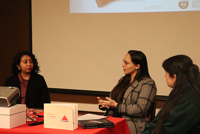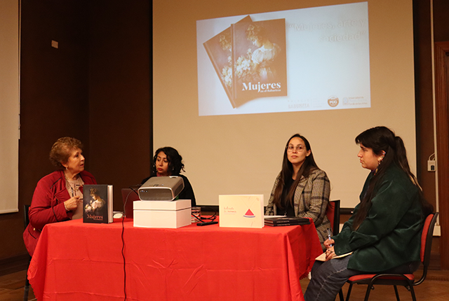 En la actividad presentaron Tamara Candia, editora del libro y periodista a cargo del área de Comunicaciones del Museo Baburizza, Melisa Jaimes, del Centro de Documentación del Fondo de las Artes de la Upla (Cedoc), Valentina Madrid, de Contenidos Digitales y Editoriales del MUG. Moderó María Teresa Devia, directora del MUG.
