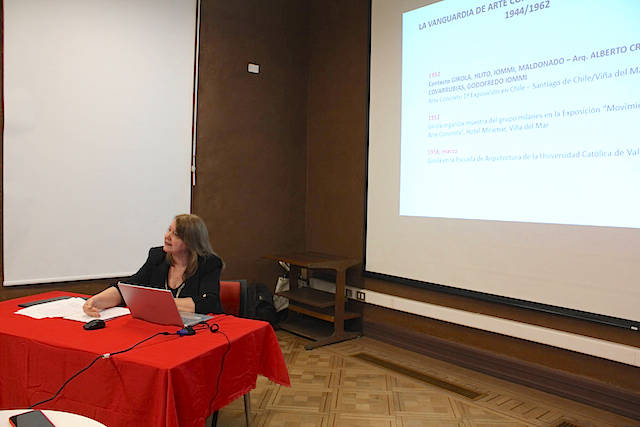 En la charla, la académica de la Universidad de Buenos Aires, abordó un estudio comparado de ciertos momentos del Arte Abstracto y el Arte Concreto argentino, en relación con la misma producción en Chile, presentación que fue atentamente seguida por los presentes.