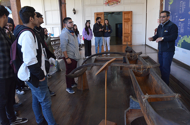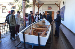Posteriormente, las y los estudiantes recorrieron dependencias del recinto y observaron in situ las embarcaciones construidas en madera que resguarda el museo, actividad que fue acompañada por una exposición didáctica y descriptiva de cada una de ellas por parte de Rivera Silva.