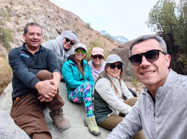 El cajón de Riecillos en la comuna de Los Andes fue el lugar escogido para realizar una jornada de autocuidado mediante trekking en un entorno natural, guiado por el coordinador de Deportes y Recreación, Carlos Otárola.