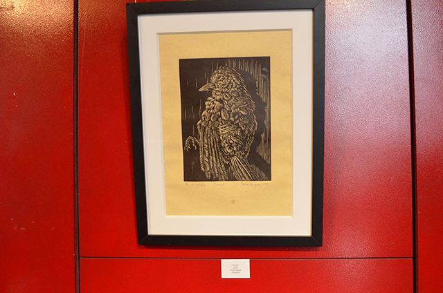 Al respecto la licenciada en arte explicó: “Mi obra (xilografía) representa varias búsquedas y hallazgos. En este caso es un pájaro muerto que encontré, y en ese sentido trato de hacer una especie de rescate de la muerte y encontrar, de alguna manera, cierta belleza en algo que no es bello, que es la muerte”.