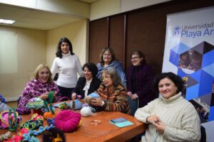 Las tejedoras coincidieron en destacar: “Tejer y compartir con las compañeras ha sido una gran experiencia, aprender que en el arte del crochet, se pueden hacer obras muy hermosas, especies marinas como en este caso y también, con la técnica hiperbólica, crear otros tipos de objetos como collares, prendedores, pulseras, etc. El crochet es una técnica muy versátil y entretenida de realizar. En esta obra quisimos representar la temática del arrecife de coral y darle una identidad Upla a través del Faro Puntángeles, reflejado en el logo institucional”.