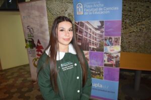 La Dra. Marta Castañeda, Directora del Departamento de Pedagogía de la Facultad de Ciencias de la Educación, explicó que el objetivo principal de esta jornada fue lograr que los y las estudiantes compartieran sus experiencias desde la diferencia de la carrera cursada y destacó la presencia del campus San Felipe: “En términos prácticos, esta es una jornada de intercambio en la que los estudiantes de las tres carreras tuvieron la posibilidad de compartir, posibilidad que probablemente hoy tienen en el medio real, pero que no necesariamente desde acá hemos podido intencionar. Uno de los grandes hitos de hoy es que tenemos la delegación de San Felipe, estamos trabajando con los alumnos de tercer año. Lo positivo de esto es el nivel de formación que ellos han adquirido. Entonces desde ahí se puede ir generando el proceso de intercambio”.