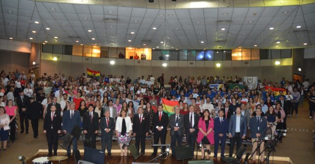 El presidente de AUGM y el CUECH, rector de la Universidad de Valparaíso (UV) Osvaldo Corrales, entregó las certificaciones acompañado de un sentido saludo e instó a las y los estudiantes destacados en Paraguay, a defender la educación pública.