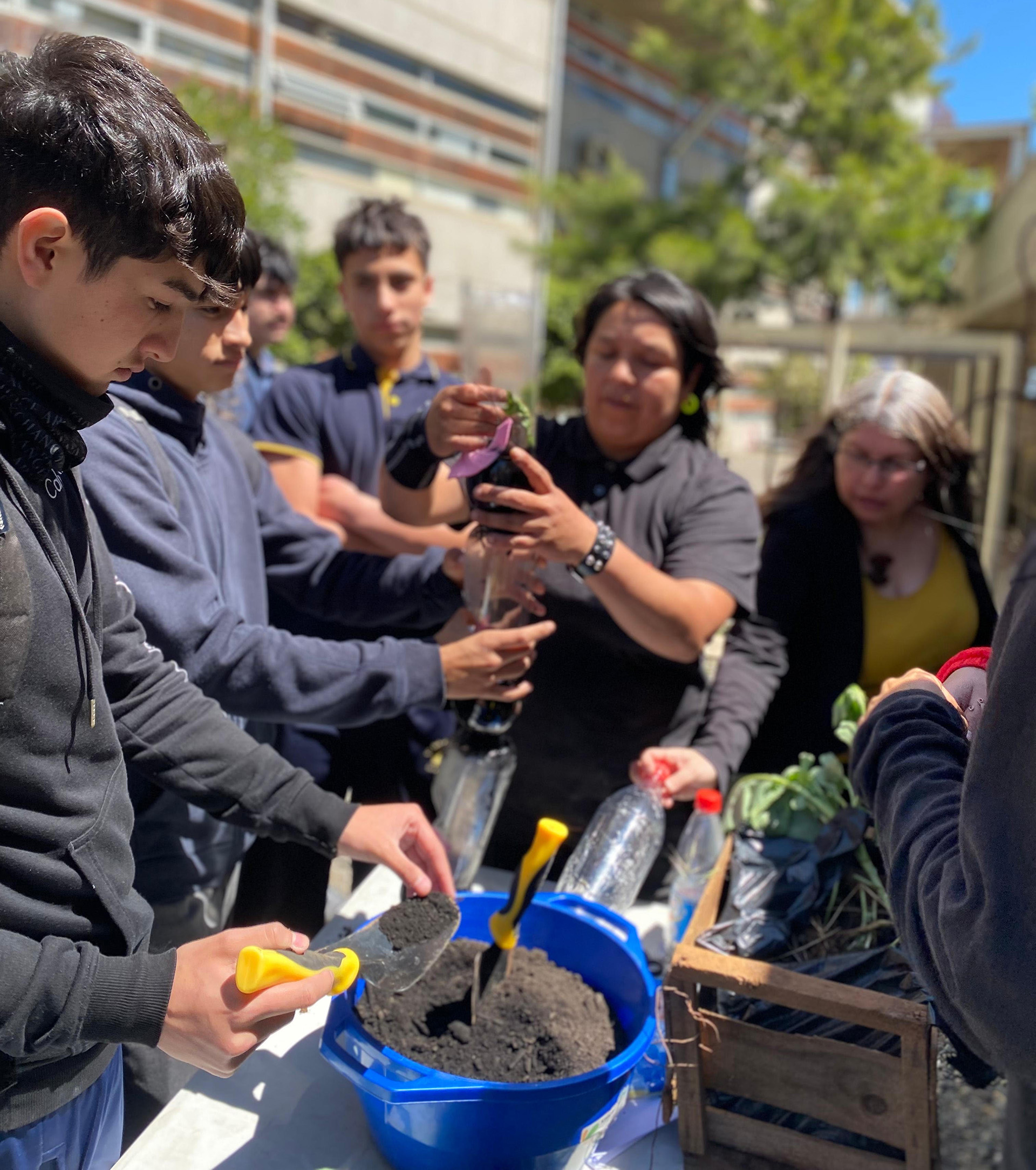 Tras ello, participaron en el primer taller de huertos verticales llevado a cabo por estudiantes ICA, para luego visitar el Laboratorio de Medio Ambiente, donde pudieron trabajar en la determinación de características físicas de suelos acompañados por profesionales que son parte del proyecto FIC-R apoyado por el Gobierno Regional.