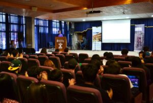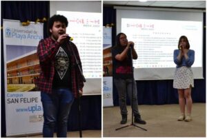 El “English Week 2023” consideró, además, una charla a cargo del psicólogo de la Unidad de Acompañamiento Estudiantil, Diego Quinteros, y aplaudidas presentaciones artísticas de tres alumnos de la carrera, quienes interpretaron en inglés, tanto en formato dúo como solista, canciones de distintas agrupaciones.