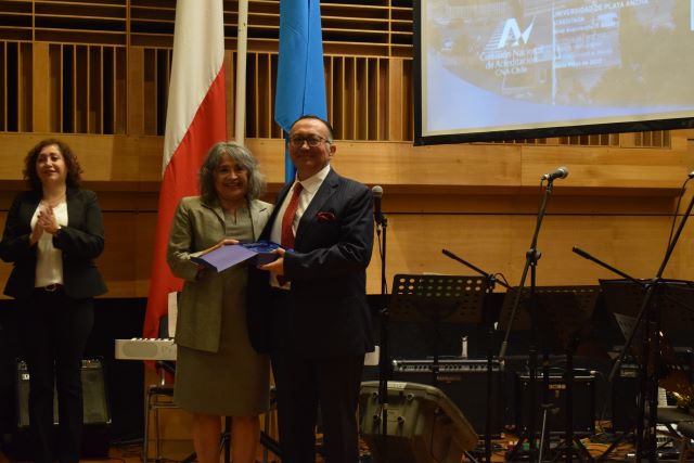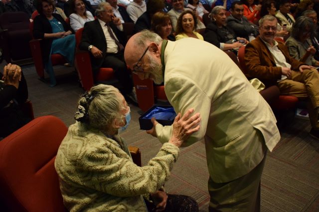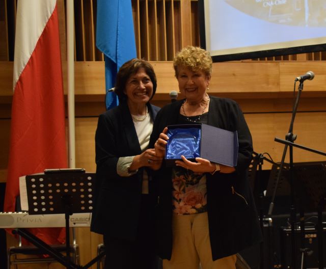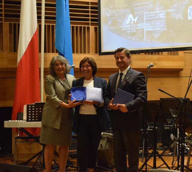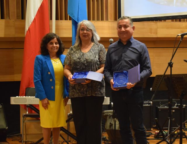 Con ovación de los asistentes, la académica de Pedagogía en Educación Física, Dra. Nelly Orellana, recibió galvano por sus 50 años (cumplidos en 2019) de contribución en el ámbito de la docencia, la investigación y de la gestión universitaria.