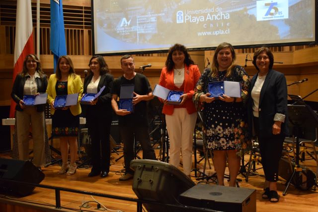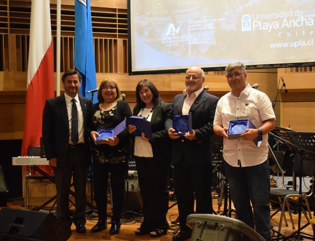 En tanto, funcionarios y funcionarias también fueron distinguidos por 25, 30, 35, 40 y 45 años de aporte institucional. En esta última categoría y con el cariñoso aplauso de la comunidad UPLA, el funcionario que se desempeñó en caja, biblioteca y casino, Luis Espejo, subió al escenario a recibir su galvano.