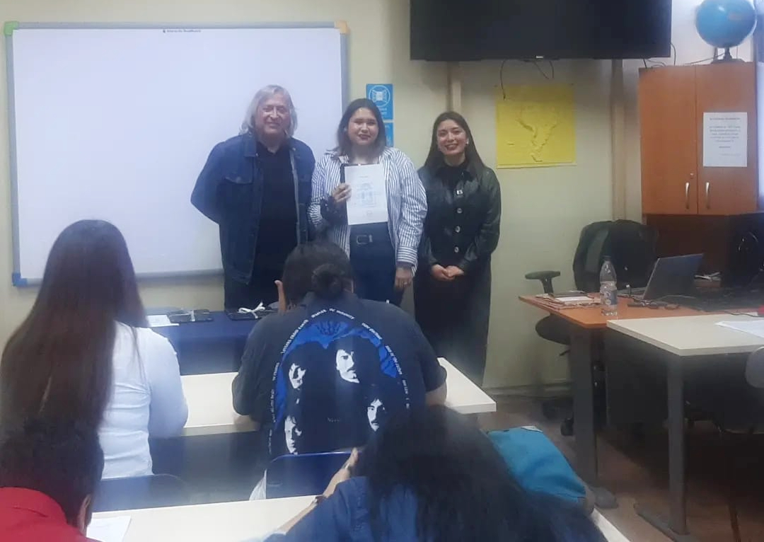 José Yáñez, Joaquín Valencia y Francisca Maggini agradecieron a la Facultad de Humanidades, al director de carrera Felipe Vergara y a la académica Aracely Moyano por la invitación y la iniciativa.