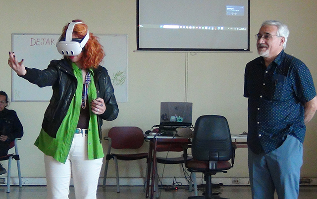 La actividad organizada por el Departamento de Educación Artística se centró en exponer el trabajo de Montenegro que dice relación con los entornos inmersivos utilizando animaciones 3D en tiempo real e integrando las diferentes disciplinas de las artes visuales como animaciones interactivas de Realidad Aumentada y Realidad Virtual.