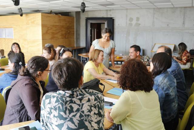 Tras las mencionadas presentaciones, a través de mesas grupales de trabajo se desarrolló un taller reflexivo en torno a los conceptos tratados, el que fue guiado por la académica integrante del equipo del proyecto, Fabiola Vera Madrid.