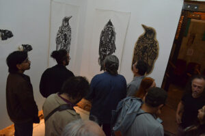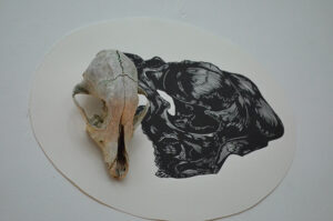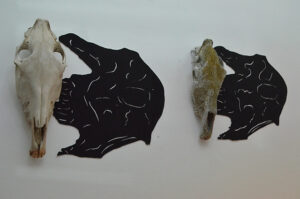 El curador de la Sala CABA enfatizó además que la artista visual utiliza el grabado como un recurso para generar, a través de las distintas imágenes de despojos de animales (huesos, cráneos), una mirada reflexiva ligada a lo ecológico, pero también al tema de la fragilidad de la vida y la brevedad de la existencia (vanitas).