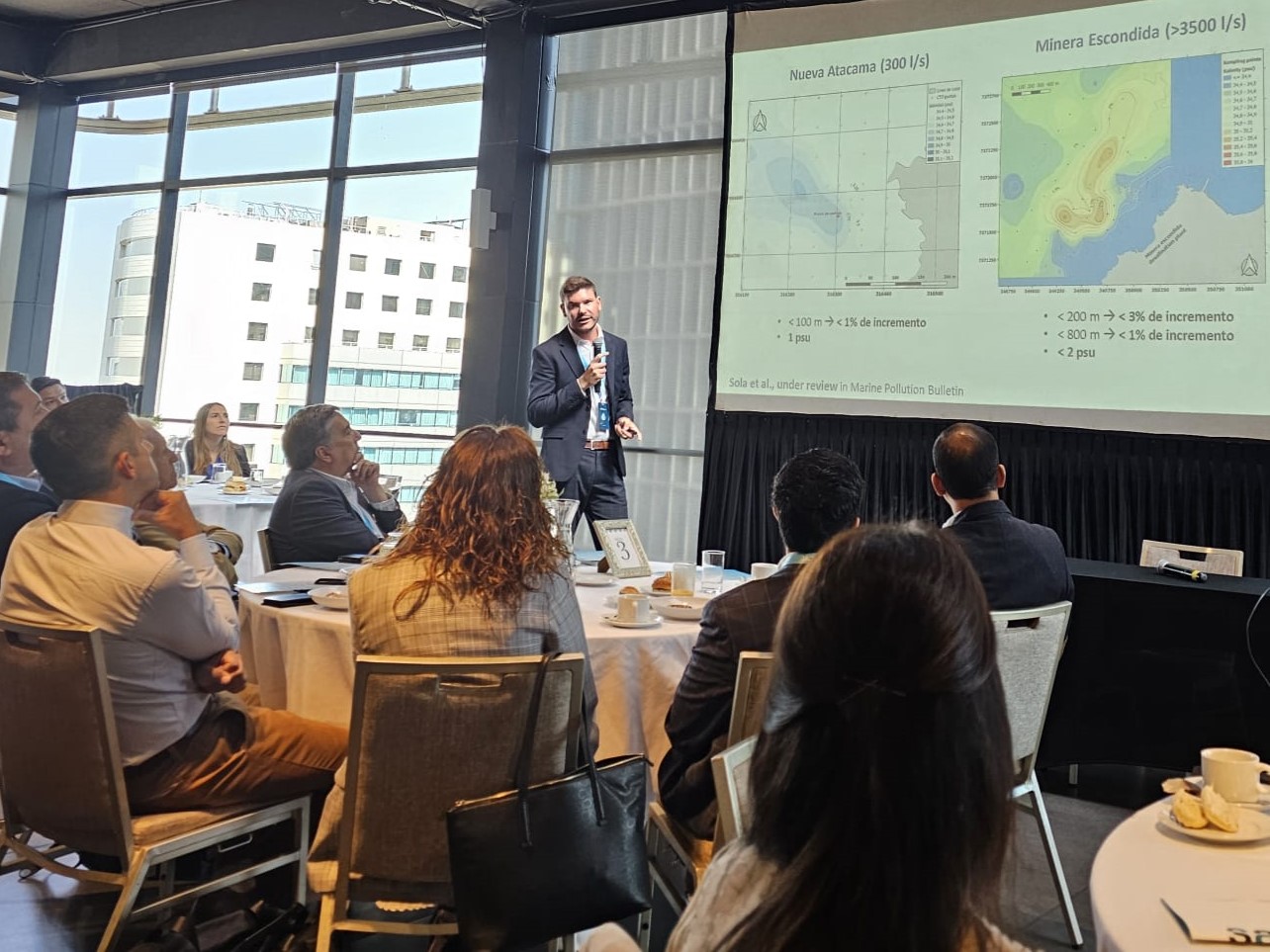 Es así como el Dr. Sola fue parte de la sexta versión de la Conferencia y Exposición “Desalinización América Latina 2024”, desarrollada en Santiago por Vostock Capital, con el apoyo del Ministerio de Minería.