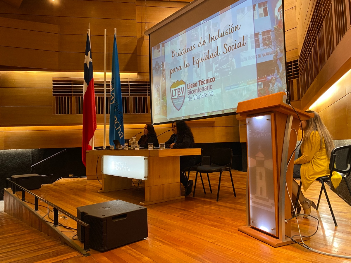 Sobre buenas prácticas en inclusión para la equidad social expusieron la trabajadora social Marisol Bocca Ocaranza y María Fernanda Bastias Ponce, ambas del Liceo Técnico de Valparaíso.