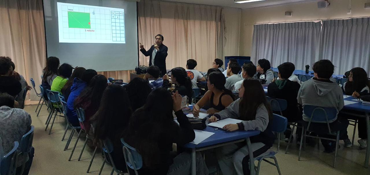 Lo anterior en el marco una serie de visitas que se vienen desarrollando desde el año pasado a este establecimiento, especialmente durante la Semana de la Matemática que realiza el colegio y por especial invitación del coordinador de Vinculación con el Medio, profesor Carlos Zelada, y la coordinadora del Departamento de Matemática, profesora Odette Castelli.