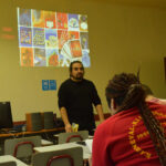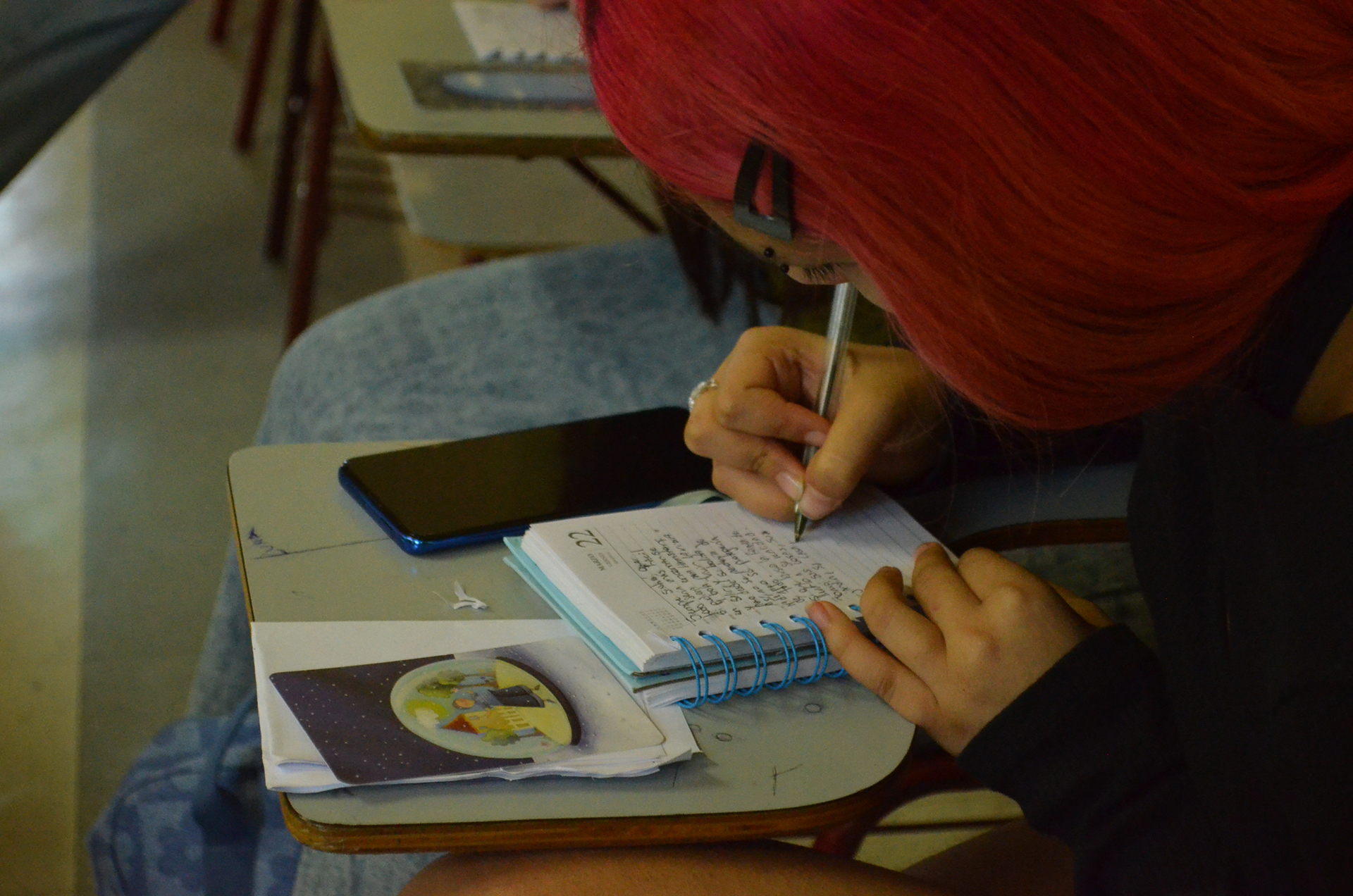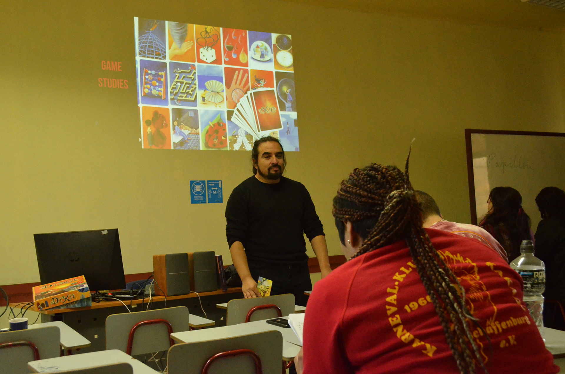 La jornada comenzó en la Facultad de Arte con el taller del académico Nibaldo Cáceres quien desarrolló primeramente una conversación sobre los alcances de la intermedialidad en la creación artística y literaria para luego pasar al taller de escritura propiamente tal, oportunidad en que cada participante plasmó y compartió sus ideas sustentado en una imagen (carta) del juego de mesa Drixit.