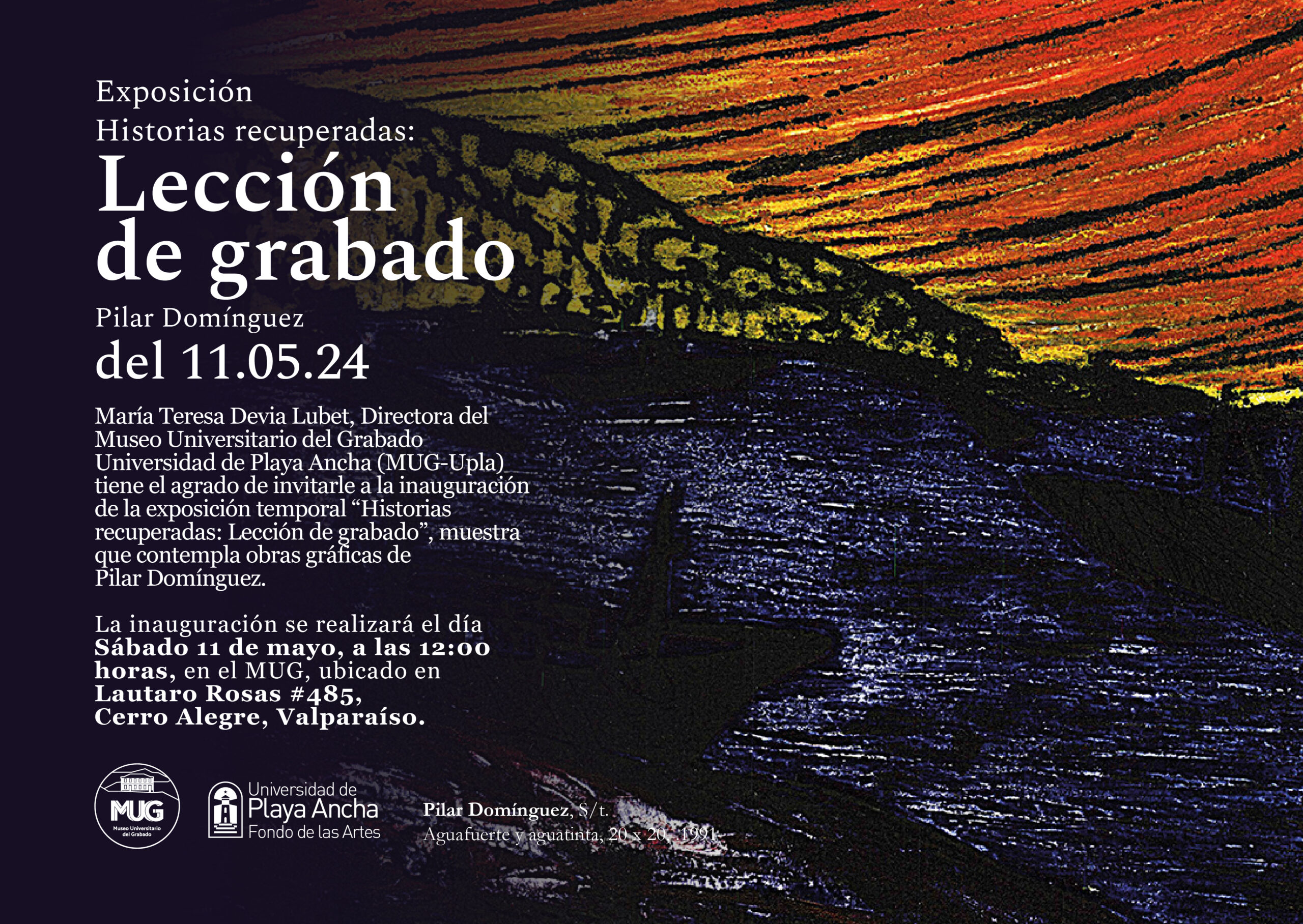 La muestra abarca grabados que forman parte de la colección del Fondo de las Artes de la Universidad de Playa Ancha, la entrada a la inauguración es liberada y se realizará en la sala temporal del Museo ubicado en Lautaro Rosas 485 en Cerro Alegre, Valparaíso.