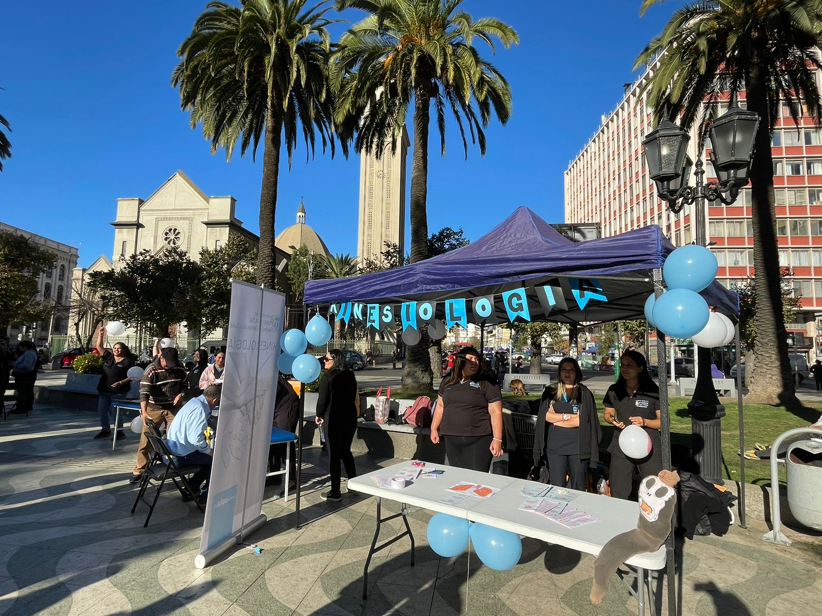 En horas de la tarde, más de 40 estudiantes de la carrera, realizaron distintas actividades trabajo en terreno en la Plaza Victoria en Valparaíso, a través de módulos informativos.