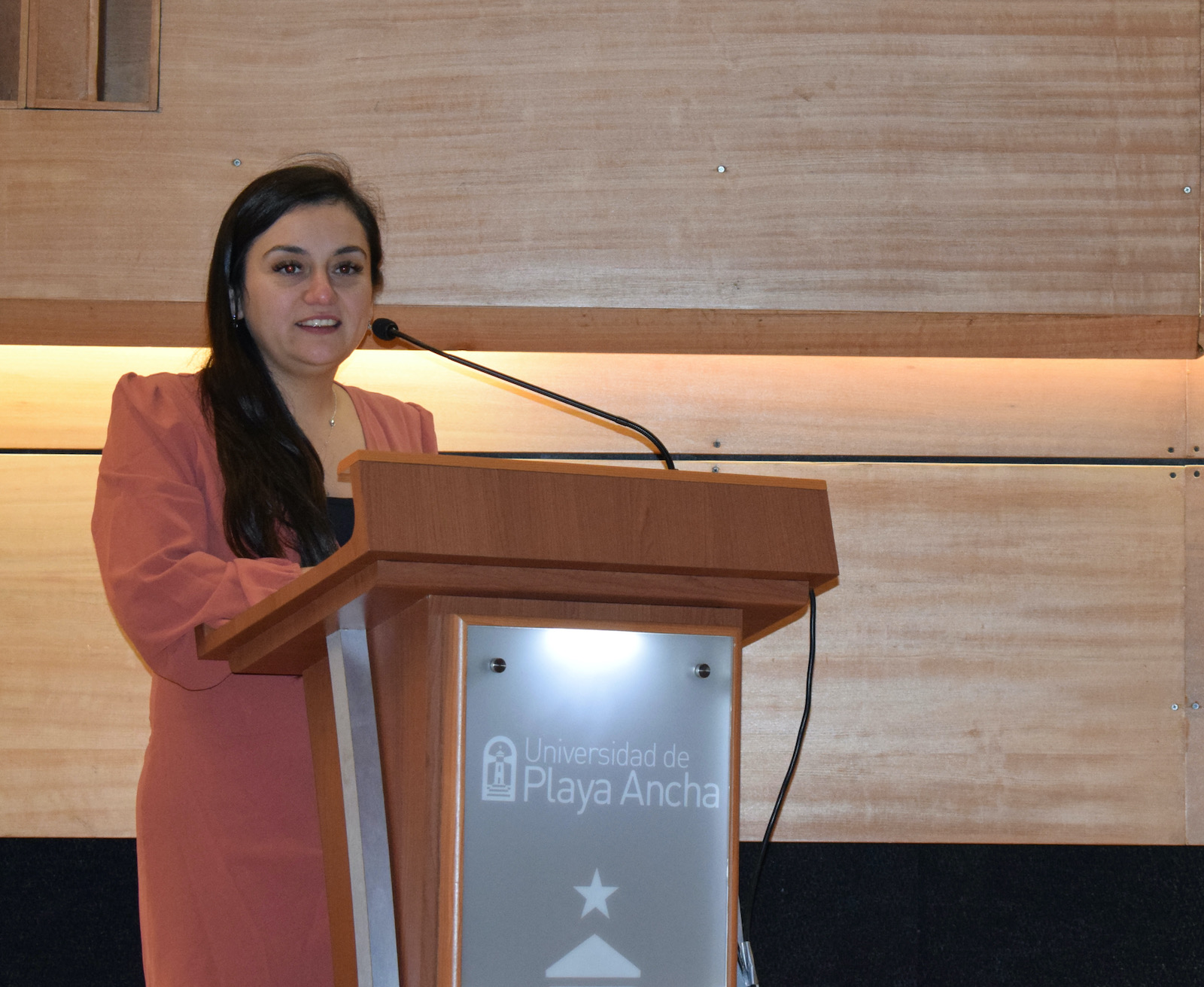 A nombre de los académicos y académicas de la carrera, se dirigió a los presentes, la profesora Dominique Perrot Tabilo, quien puso en valor la importancia de esta ceremonia y lo que significa para los y las estudiantes en formación.