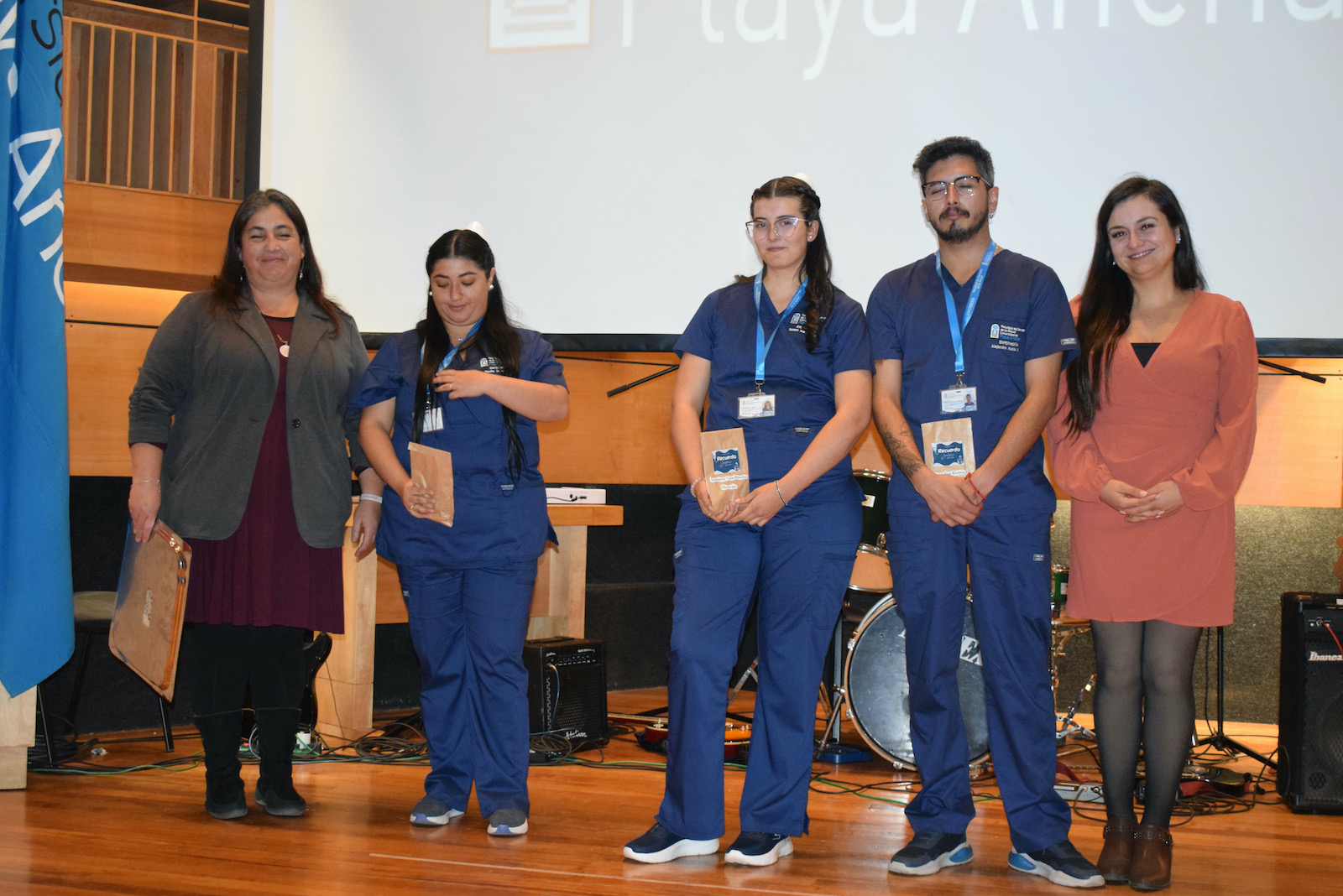 Tras estas palabras, las académicas Gloria López Coloma, Dominique Perrot Tabilo , Loreto Páez Alliendes y Mariana Merino, hicieron entrega de manera simbólica de la credencial que los y las acredita como estudiantes investidos e investidas.