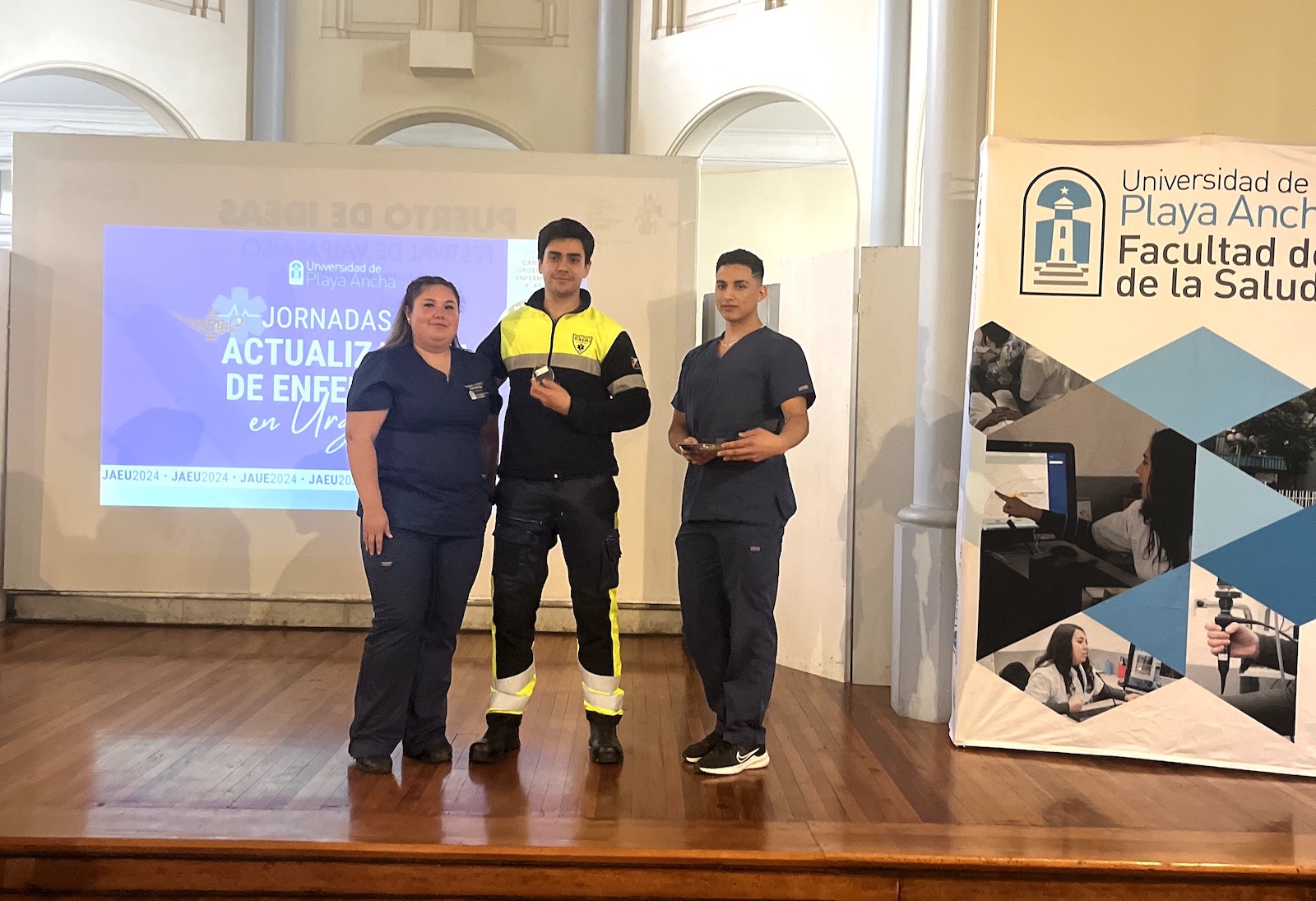 Entre los expositores de la jornada hubo profesionales (médicos y enfermeros y enfermeras) que se desempeñan en distintos establecimientos de salud pública; docentes de nuestra institución, e integrantes del grupo GRIMP del Cuerpo de Bomberos de Valparaíso. Uno de ellos fue Jaime Aréstegui Carvajal, quien valoró que la Universidad genere este tipo de espacios para compartir sus experiencias.