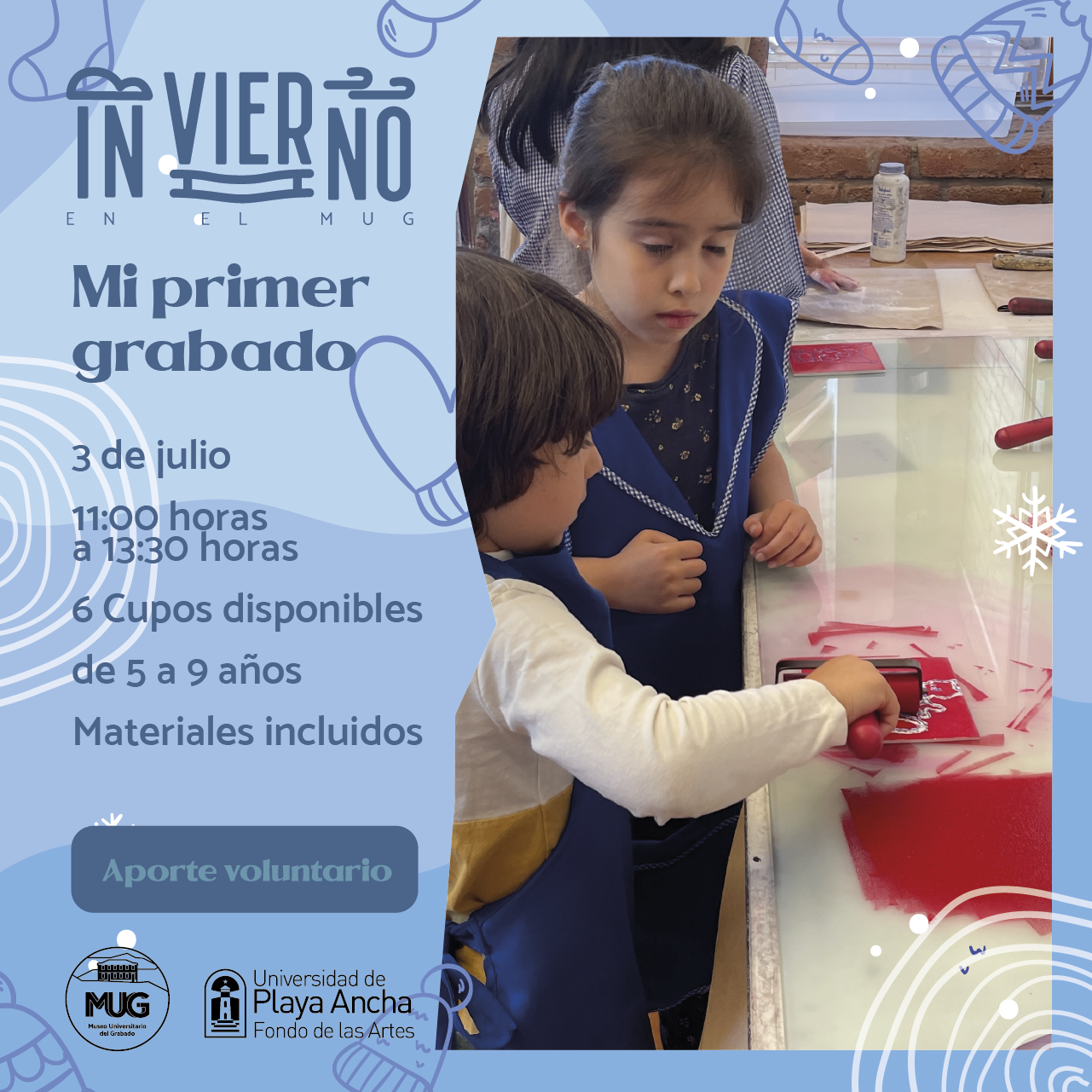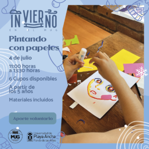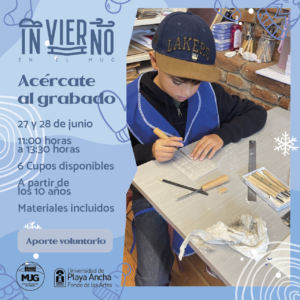 “Quiero dejarlos invitados a que participen en los talleres que realizaremos en las vacaciones de invierno en el MUG. Son actividades que están pensadas para generar una cercanía al mundo del grabado, a las distintas disciplinas artísticas, conoceremos distintos materiales y son talleres muy entretenidos, así que espero verlos y que puedan sacar al artista que cada uno lleva dentro”, mencionó María Paz Huenul Colarte, encargada del área de Mediación del MUG.