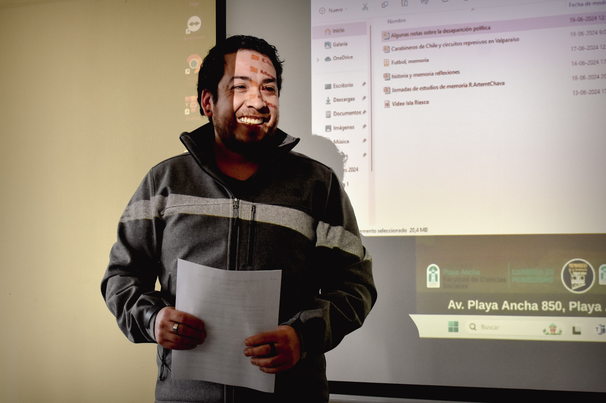 En la Sala Víctor Silva Echeto de la Facultad de Ciencias Sociales (espacio que rinde homenaje al fallecido exacadémico de Periodismo de la Universidad de Playa Ancha), se desarrolló la Mesa N°6 “Memoria y Derechos Humanos: Archivos, sitios y problemas conceptuales”, en el marco de las “Primeras Jornadas de Estudios sobre Memorias y Resistencia: Enfoques, miradas y problemas. Chile y América Latina”, organizadas por las carreras de Periodismo y de Pedagogía en Historia y Geografía, junto al Núcleo de Investigación “Memorias de la Resistencia de Valparaíso” de la UPLA.