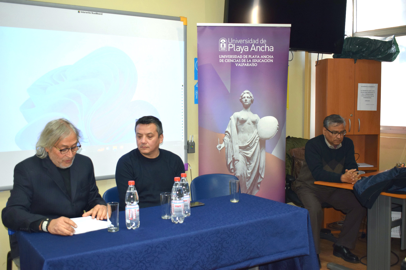 Gracias a la gestión del Dr. Eduardo Caviares, fue posible que el Dr. Villalón presentara algunos resultados de un proyecto de iniciación que lidera, el cual busca indagar sobre qué tipo de ciudadanía se transmite cuando se enseña historia. En este contexto, reflexionó en torno a cómo los discursos que se desarrollan sobre hechos del pasado, van construyendo tipos de ciudadanos.
