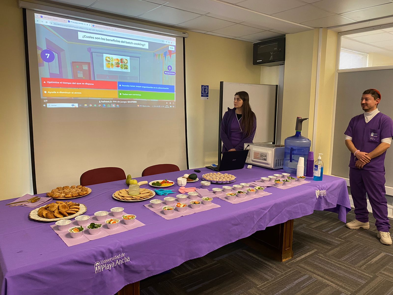 “Los alumnos internos compartieron recomendaciones sobre cómo cocinar para toda la semana sus preparaciones, tanto de desayuno, almuerzo, cena y colaciones; dado que nunca se cuenta con el suficiente tiempo para realizarlo”, afirmó la académica y supervisora de la sesión educativa.