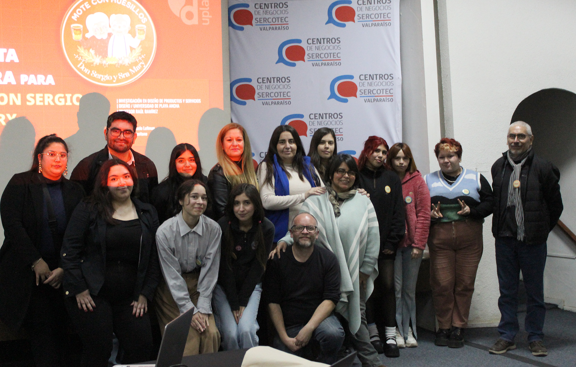 Un trabajo colaborativo y asociativo realizaron estudiantes de tercer año de la carrera de Diseño de la Facultad de Arte UPLA en conjunto con el Centro de Negocios Sercotec de Valparaíso, iniciativa centrada en el desarrollo de un plan de marketing para el emblemático local de venta de mote con huesillos “Don Sergio y Sra. Mary” de propiedad de la microempresaria Ingrid Henríquez, ubicado en la cercanía del Cementerio Nº3 de Playa Ancha.