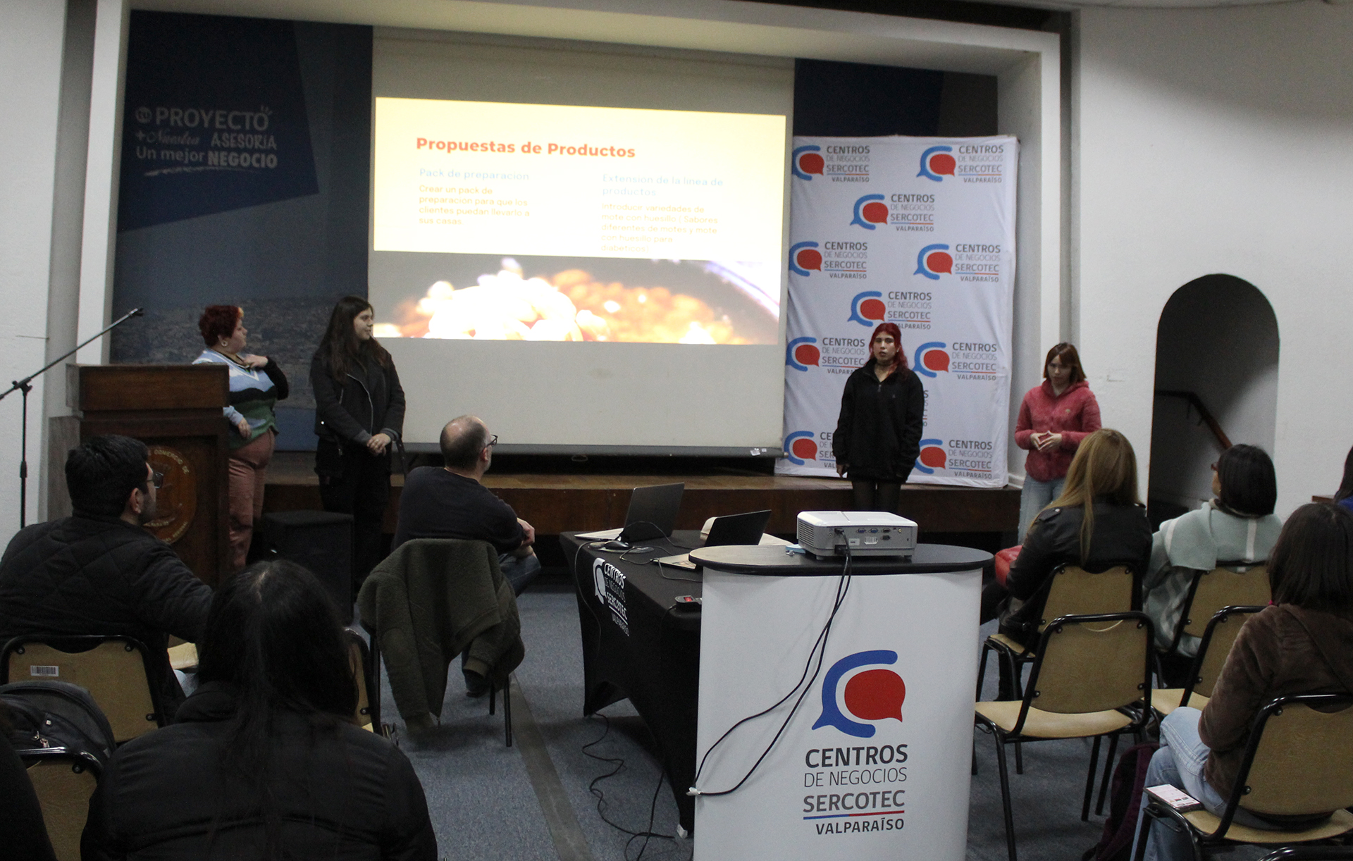 La fase final de este proyecto fue presentada en el auditorio del Centro de Negocios Sercotec de Valparaíso y contó con la presencia del director de la carrera de Diseño de la UPLA, Guido Olivares Salinas y la jefa del Centro, Carolina Carrasco. En esta jornada tres grupos de estudiantes expusieron los resultados y las recomendaciones obtenidas, ofreciendo a la emprendedora porteña nuevas herramientas para fortalecer su negocio, conectar aún más con la comunidad y mejorar su posicionamiento de marca.