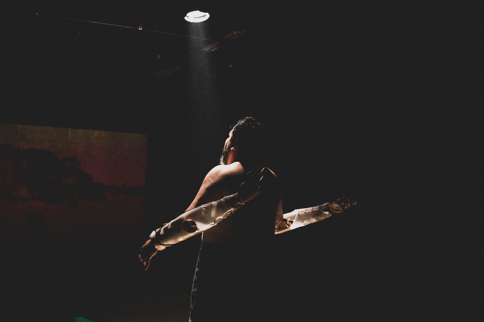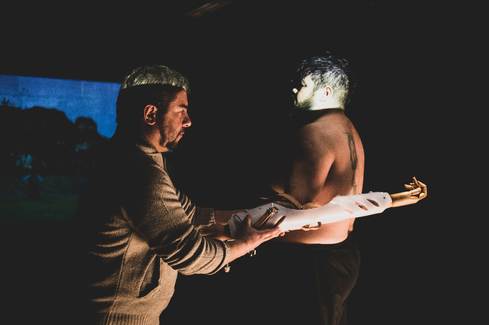 “Los personajes representan cuestiones del afecto, el fuego, el dolor, a través de la madre, el hijo, lo militares, cuyos gestos simbólicos conectan con distintas capas de la historia. Se expresaron diferentes disciplinas que se integraron, para lo cual, desde el marco teórico, compartimos nuestras capacidades disciplinares para desarrollar la propuesta”, dijo Mauricio Toro, quien junto a Fabiola Leiva y Guillermo Becar, presentaron la obra Quedan cenizas. La propuesta exploró temas de memoria y transformación, aplicando una combinación de medios visuales y performativos para crear una experiencia inmersiva e introspectiva potente en lo afectivo y político.
