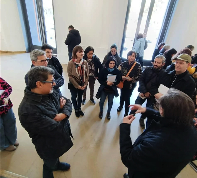 e integrado por el decano de la Facultad de Arte, Alberto Madrid Letelier, la académica Javiera Cádiz (Módulo de Museología) y el académico Ramón Castillo (encargado del módulo curatorial), quienes fueron recibidos, junto a las y los estudiantes, por la especialista en Arte Latinoamericano y académica de la Universidad Tres de Febrero (UNTREF) de Argentina, María Cristina Rossi.