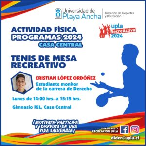 El estudiante de Derecho y monitor de la actividad, Cristian López Ordoñez, compartirá sus conocimientos y pasión por este deporte, con el objetivo de que los participantes adquieran los elementos básicos de la disciplina deportiva, así como las habilidades técnicas necesarias como saques, golpes (derecha – revés) y remaches, entre otros. Todo lo anterior, para obtener beneficios en la salud física, mental y social.