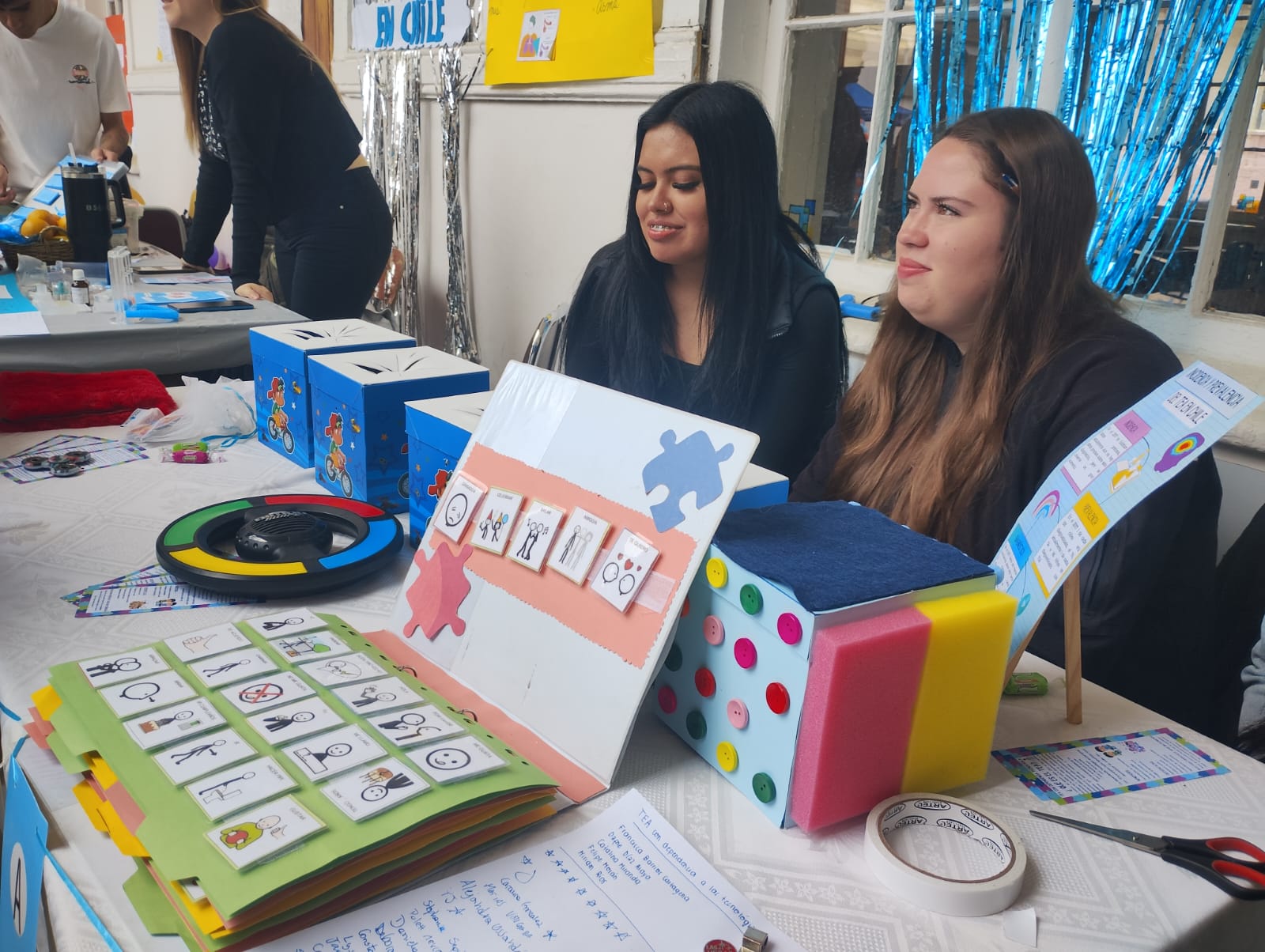 Piera López Candia, Terapia Ocupacional y sofía Cortés Ortiz, Nutrición y Dietética: «Estamos trabajando la selectividad alimentaria en niños con Trastorno de Espectro Autista. Muchos de ellos presentan restricción en la alimentación, como por ejemplo, los olores, las texturas, los colores. Entonces, hay que presentarles los alimentos de distintas formas, y para eso son todas estas actividades».