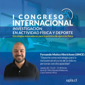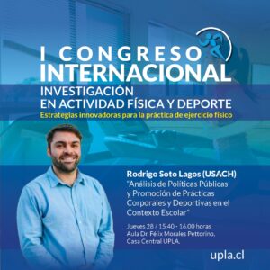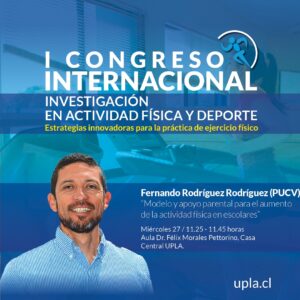 La actividad gratuita, que aún tiene abierta las inscripciones para asistir, es organizada por la Facultad de Ciencias de la Actividad Física y del Deporte de la UPLA, a través del Departamento de Ciencias de la Actividad Física y del Observatorio de Ciencias de la Actividad Física, está programada para el miércoles 27 y jueves 28 de noviembre.