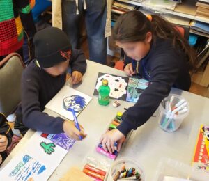 Y así se evidenció en el sentir de los niños y niñas una vez finalizado el taller. El estudiante Sebastián Lugo Bello expresó: “Me gustó, me divertí mucho en hacerlo con mis compañeros, todos disfrutamos de pintar. Yo dibujé una bandera del Wanderers porque me gusta ese equipo, y la de Chile porque me representa”. En tanto, Danilo Hidalgo Pino destacó que esta experiencia “fue genial, porque pudimos hacer timbres, cuentos. Yo dibujé la insignia del Wanderers, que es mi equipo favorito, y un arcoiris. Lo que más me gustó fue el timbre, nunca había hecho uno”.