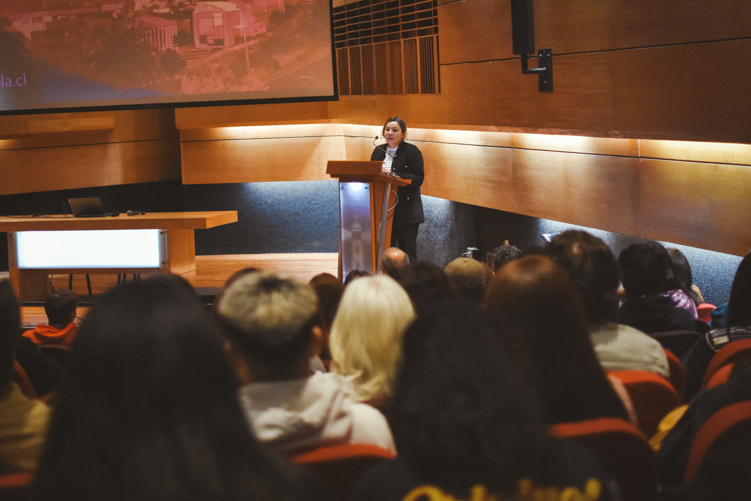 Al culminar los saludos, Boris González, director general de Desarrollo Estudiantil, dio a conocer la labor de la unidad que dirige, cuya misión es promover el desarrollo integral de las y los estudiantes a través de políticas que fomenten espacios de transformación emblemáticos y significativos para el buen vivir. El profesional expuso en torno a los diversos servicios que brindan, sobre quiénes serán las personas que les atenderán y en relación a los beneficios a los cuales es posible acceder, tales como: gratuidad, becas ministeriales de arancel y mantención, Tarjeta Nacional Estudiantil (TNE) o a los créditos (Solidario y con Garantía del Estado).