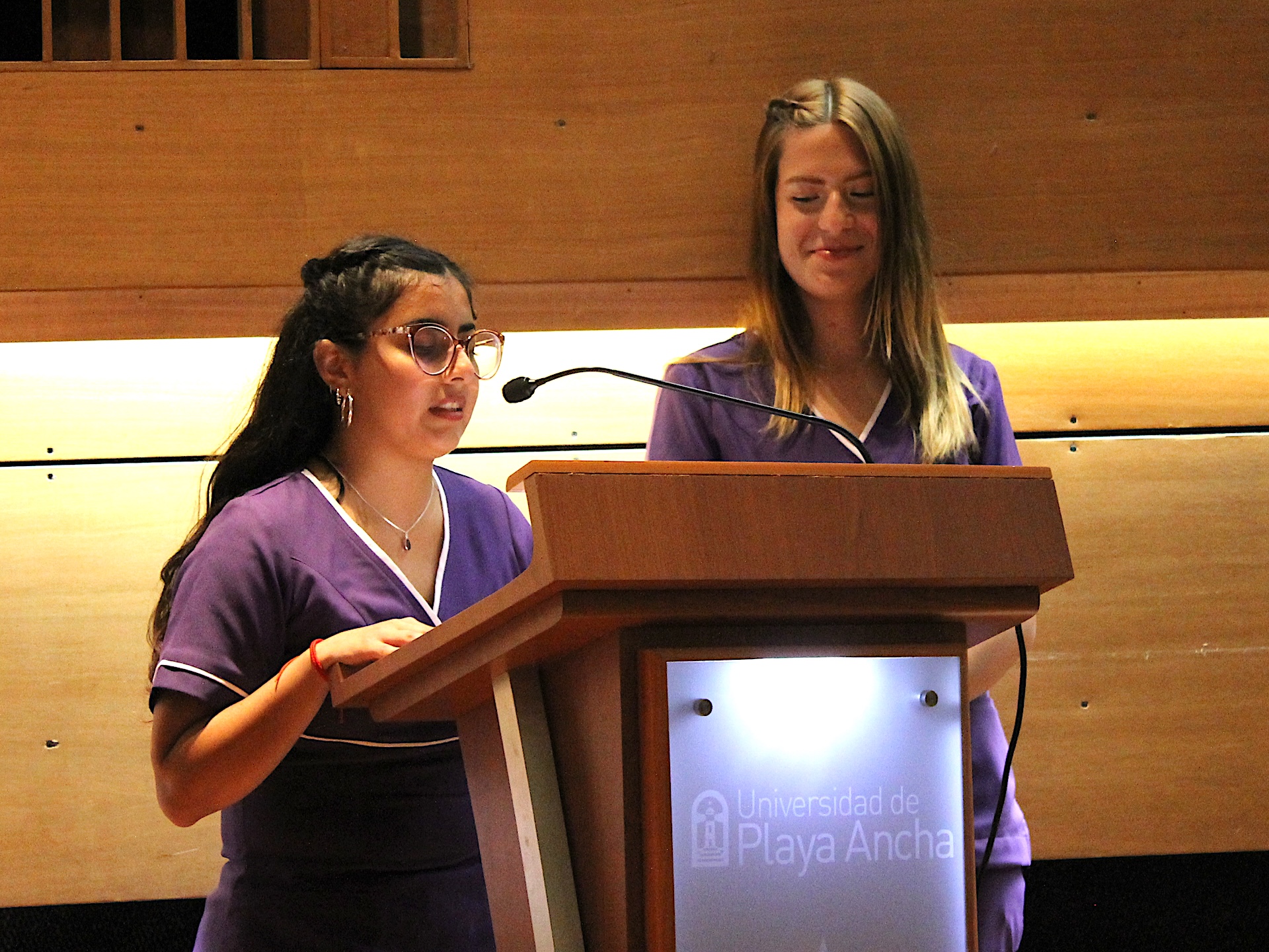 A nombre de quienes fueron investidos e investidas, se dirigieron a los presentes las estudiantes Valentina Cisterna Concha e Isadora Piña Jil, quienes se refirieron al significado que tiene este acto para el grupo que representan.