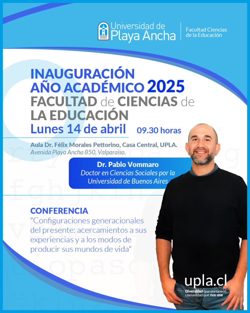Problematizar y comprender la concepción del mundo, además de visualizar las principales inquietudes de la juventud y la infancia en nuestros tiempos, serán las temáticas a abordar por el Dr. Pablo Vommaro en la Inauguración del Año Académico de la Facultad de Ciencias de la Educación.