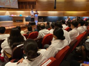 Sus docentes les entregaron una piocha de identificación, mientras que la coordinadora institucional de Prácticas, Dra. Daysi Reinoso Salinas, fue la encargada de reflexionar sobre el sentido de la ceremonia, simbolizado en la luz de una vela encendida.