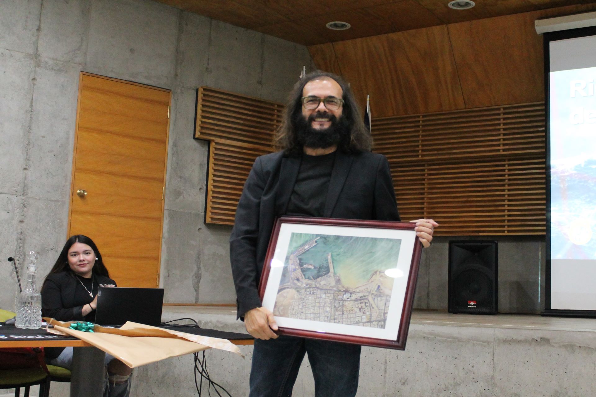 En tanto, la directora del Departamento de Ciencias y Geografía de la Facultad de Ciencias Naturales y Exactas, Dra. Sylvia Moraga Toledo, entregó un reconocimiento a Marcelo Lagos por su aporte a la disciplina.