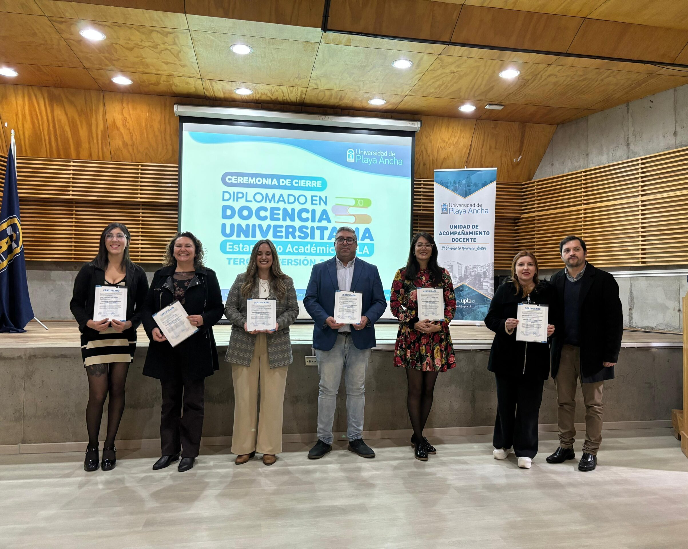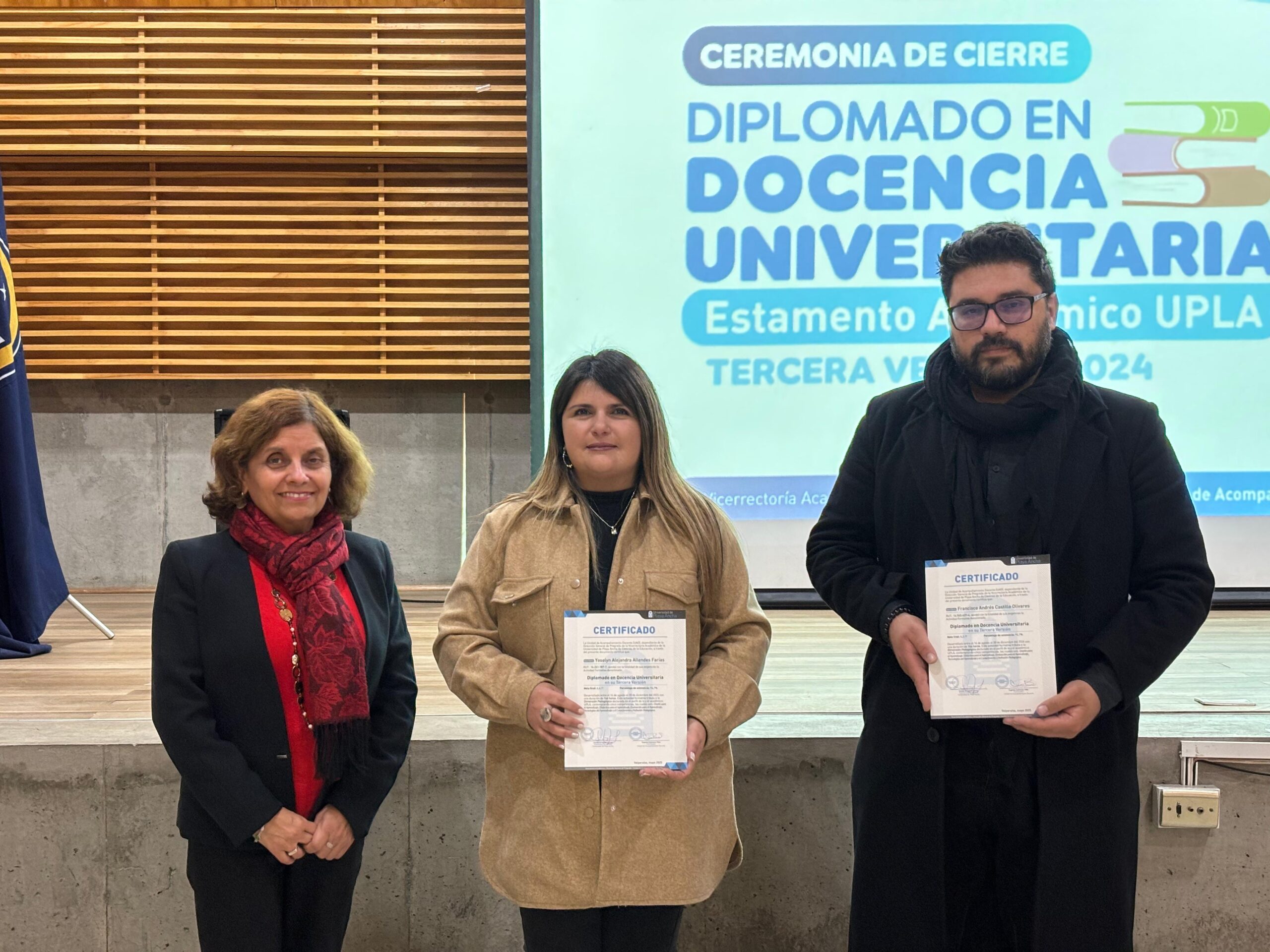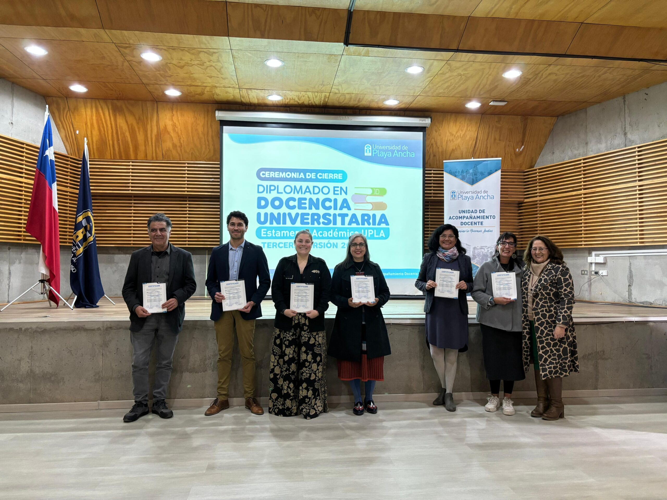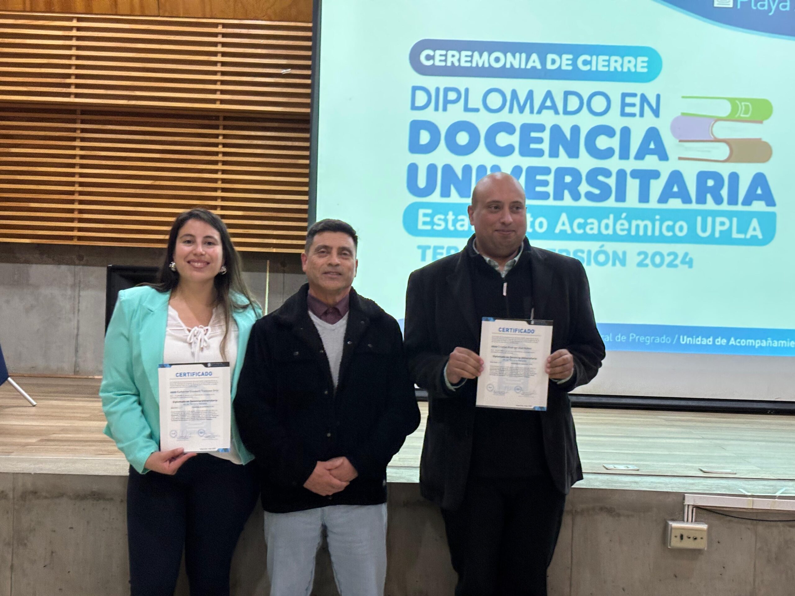 Treinta y cinco académicos y académicas recibieron su certificación de la tercera versión del Diplomado en Docencia Universitaria que impartió la Vicerrectoría Académica de la UPLA, a través de la Unidad de Acompañamiento Docente, UAD.
