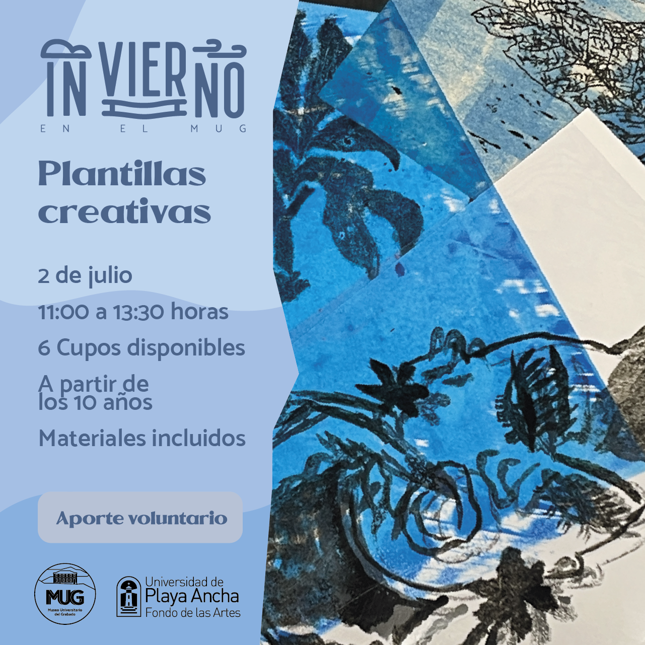 Durante las vacaciones de invierno, el Museo Universitario del Grabado Universidad de Playa Ancha (MUG-UPLA), tendrá una programación especial de talleres artísticos dirigidos a personas de todas las edades, para fomentar la creatividad y expresión a través del grabado y otras actividades plásticas.