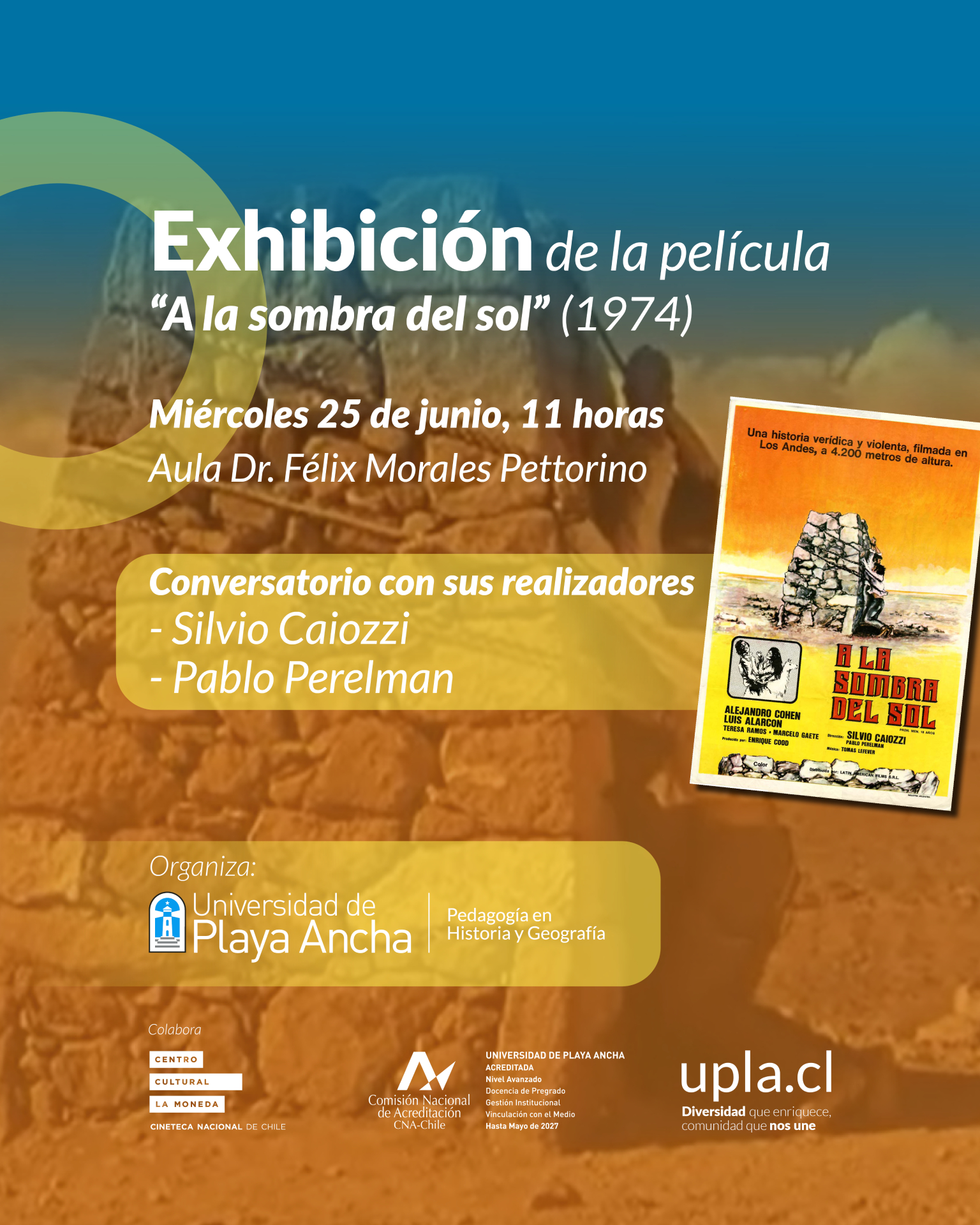 Se trata de la exhibición de la película “A la sombra del sol” (1974) y posterior conversatorio con los realizadores, que se realizará el miércoles 25 de junio, a las 11 horas, en el Aula Dr. Félix Morales Pettorino de Casa Central.