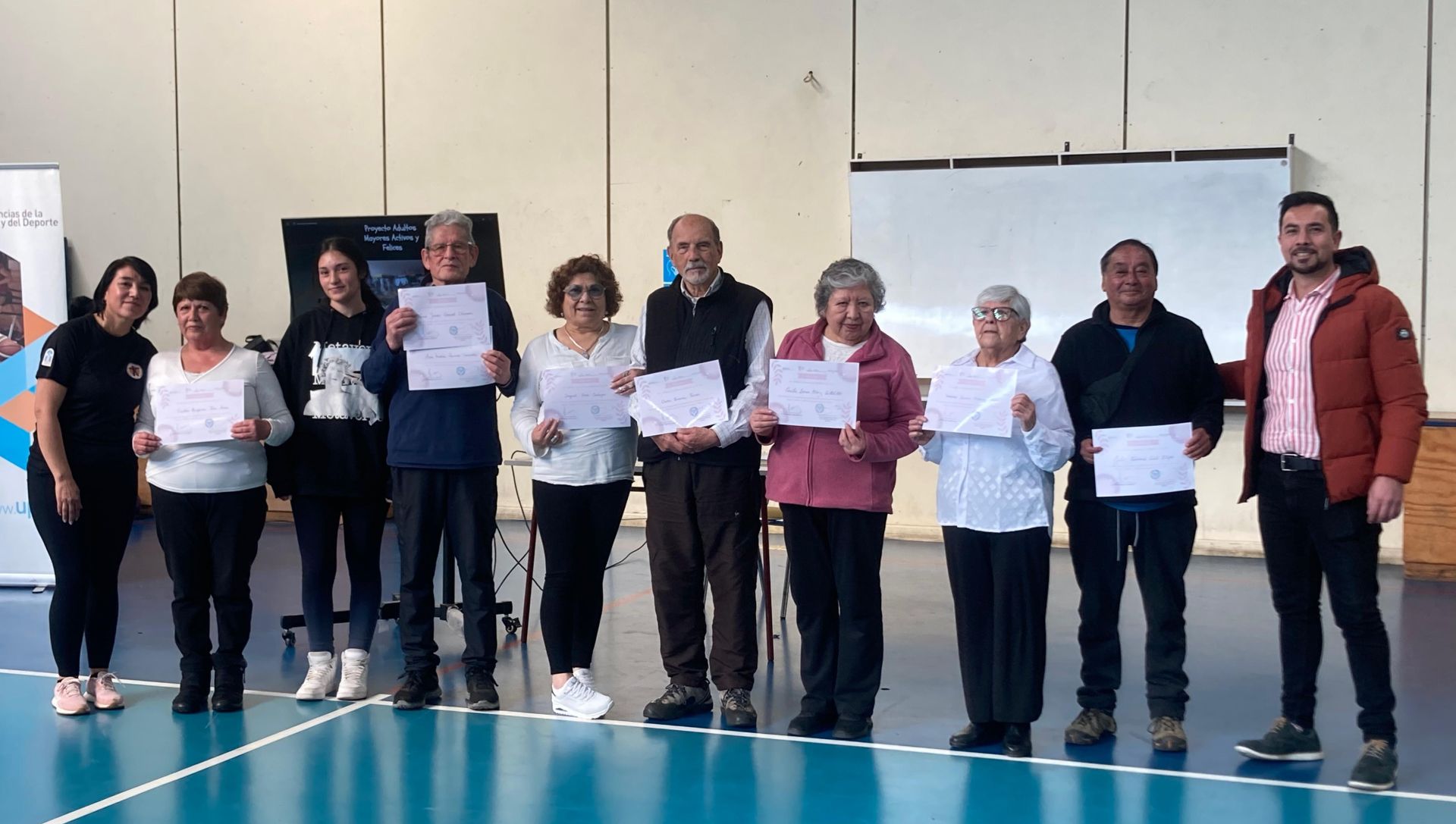 Durante meses, personas mayores del sector participaron en sesiones de ejercicio funcional y rutinas adaptadas que apuntaban al fortalecimiento físico y al vínculo comunitario. Las actividades se realizaron tanto en la sede vecinal como en el gimnasio institucional de la universidad, permitiendo así un cruce entre estudiantes, adultos mayores participantes y académicos de la Facultad de Ciencias de la Actividad Física y del Deporte.