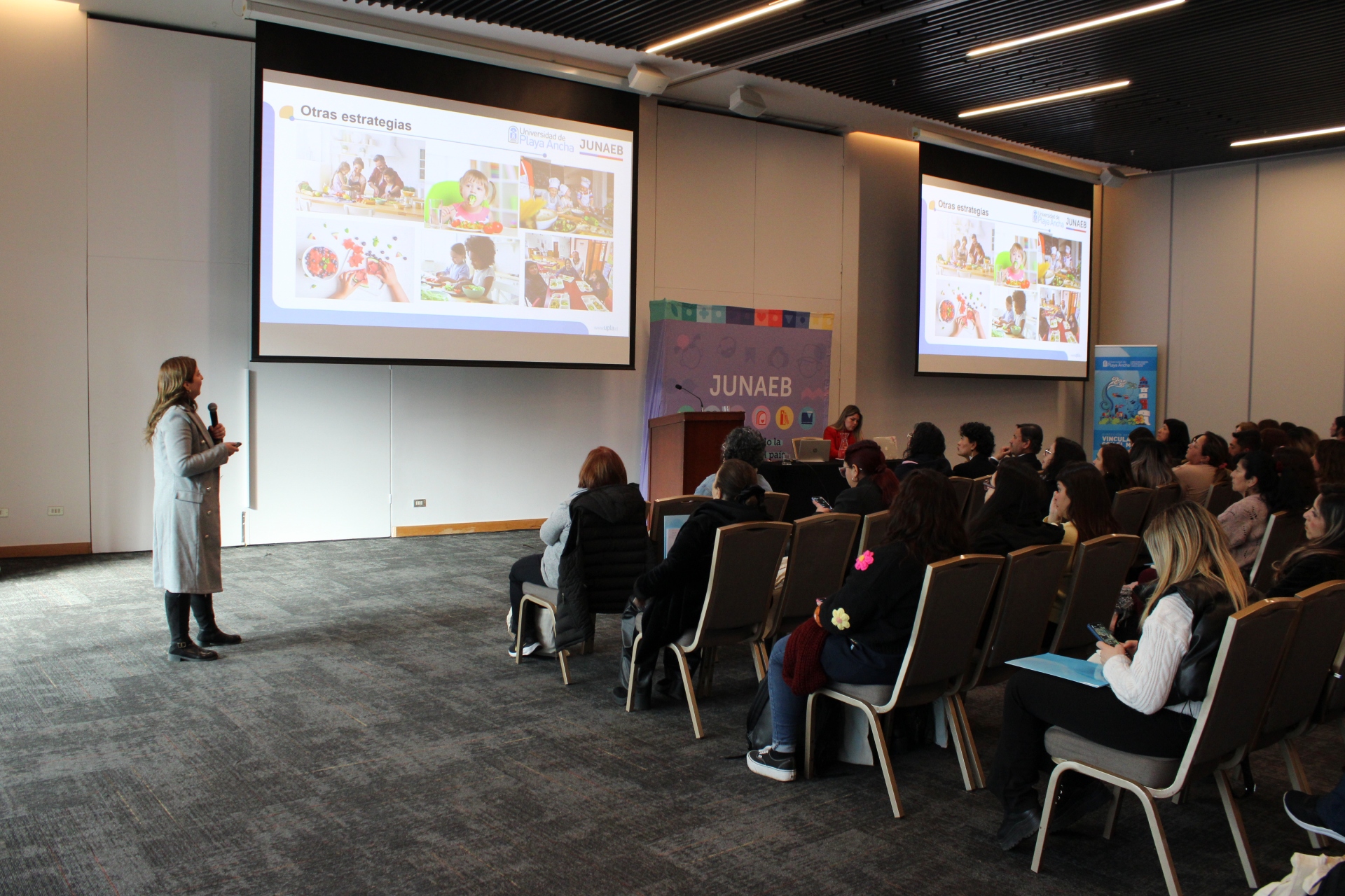 Equipos docentes y directivos de establecimientos educacionales de la Región Metropolitana participaron en el seminario Hábitos Saludables y Alimentación Consciente, organizado por la Junta Nacional de Auxilio y Becas (JUNAEB) en colaboración con la Universidad de Playa Ancha (UPLA), para fortalecer la gestión del Programa de Alimentación Escolar.