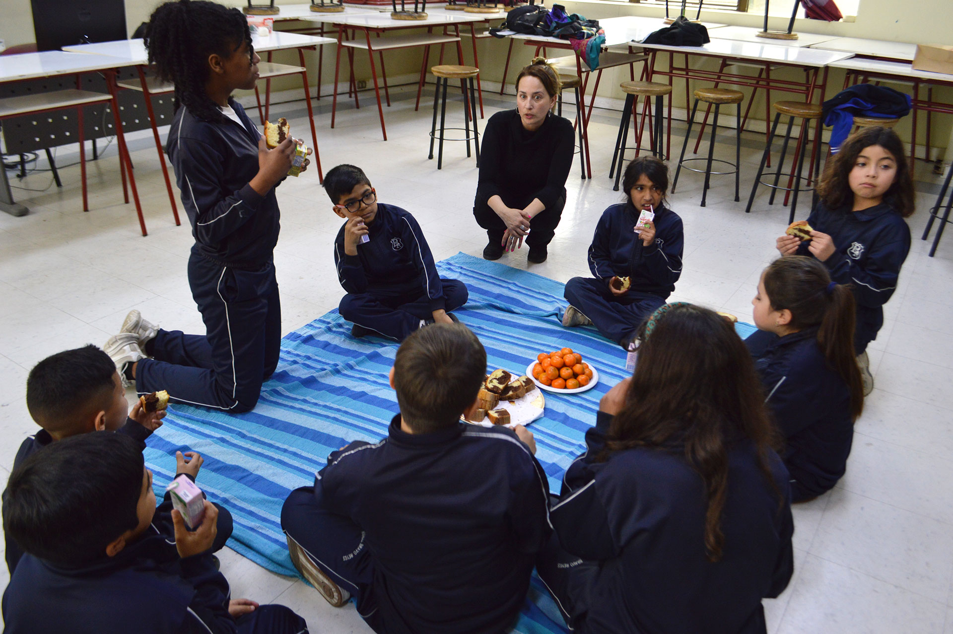 Javier Apablaza y Catalina Díaz (cuarto básico) dijeron sentirse muy motivados con la visita a la Facultad de Arte y como fueron recibidos para presentar su propuesta. Expresaron que les gusta mucho lo que están haciendo, principalmente porque se inspiraron en hacer algo que antes representaba un problema en su escuela, y con la recolección de las cascaras de naranjas de los patios sienten que están haciendo lo correcto. Ambos coincidieron que es un trabajo nuevo el extraer el exocarpio de las naranjas para hacer un aceite donde colocar el papel oficio que luego transformarán en libretas aromatizadas.