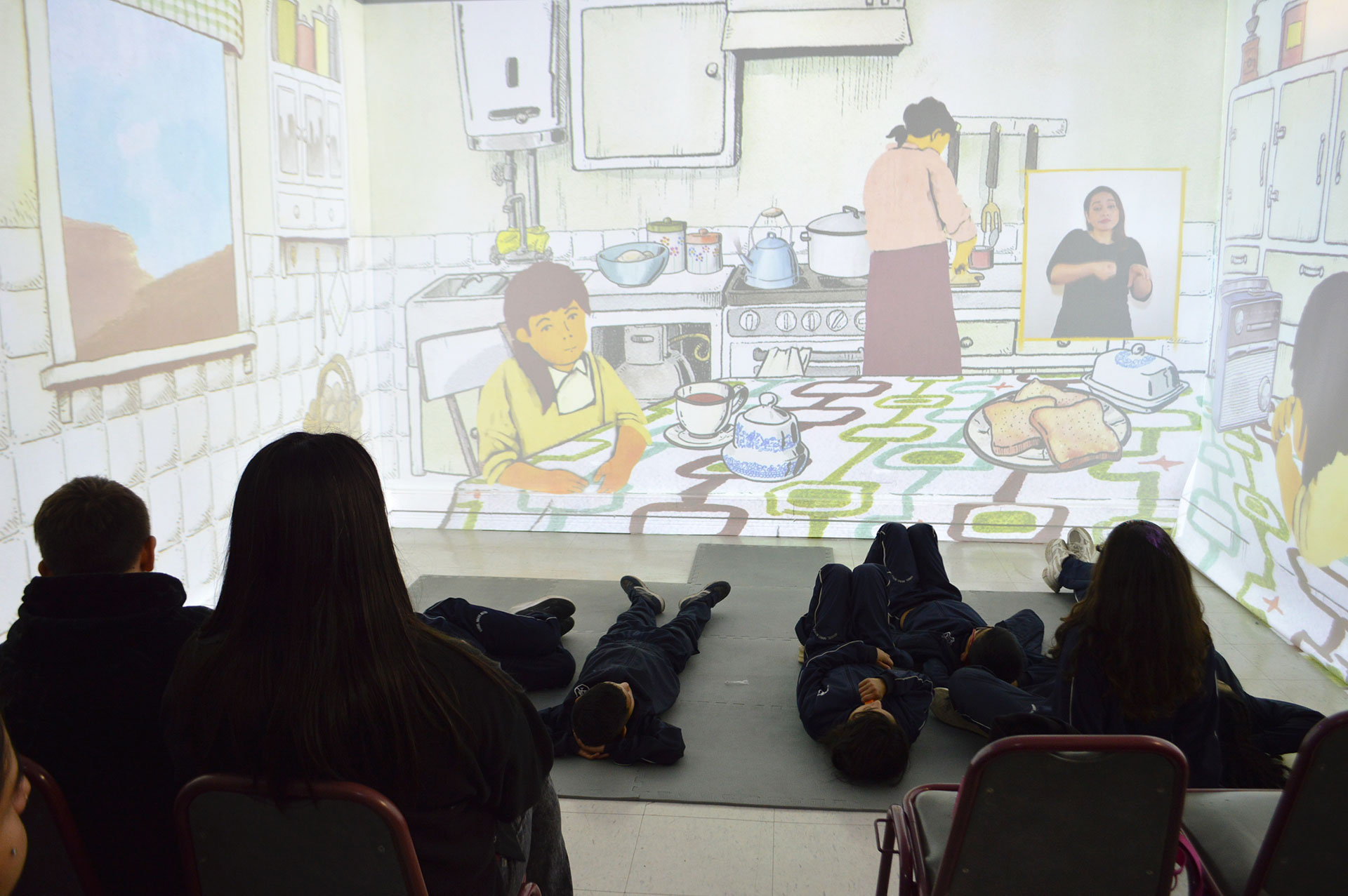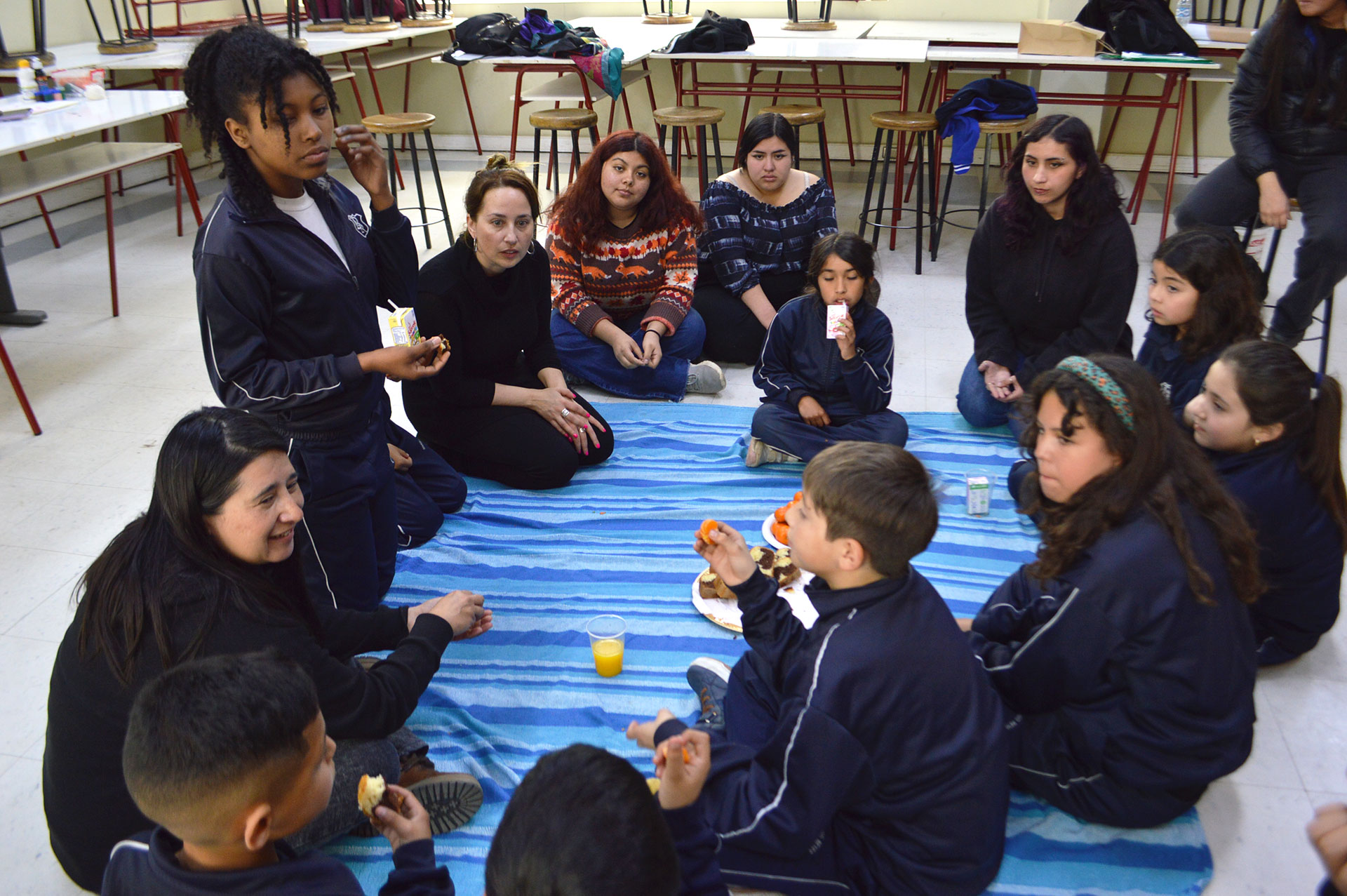 Además, se concretó un recorrido por los distintos talleres de la Facultad de Arte, por la plaza de los loros (recolección de hojas), cerrando la jornada con la visita de las y los menores a la exposición audiovisual “Inmersivas: Descubriendo a las mujeres en la educación chilena” que se proyecta en el cuarto piso de la Facultad de Arte.