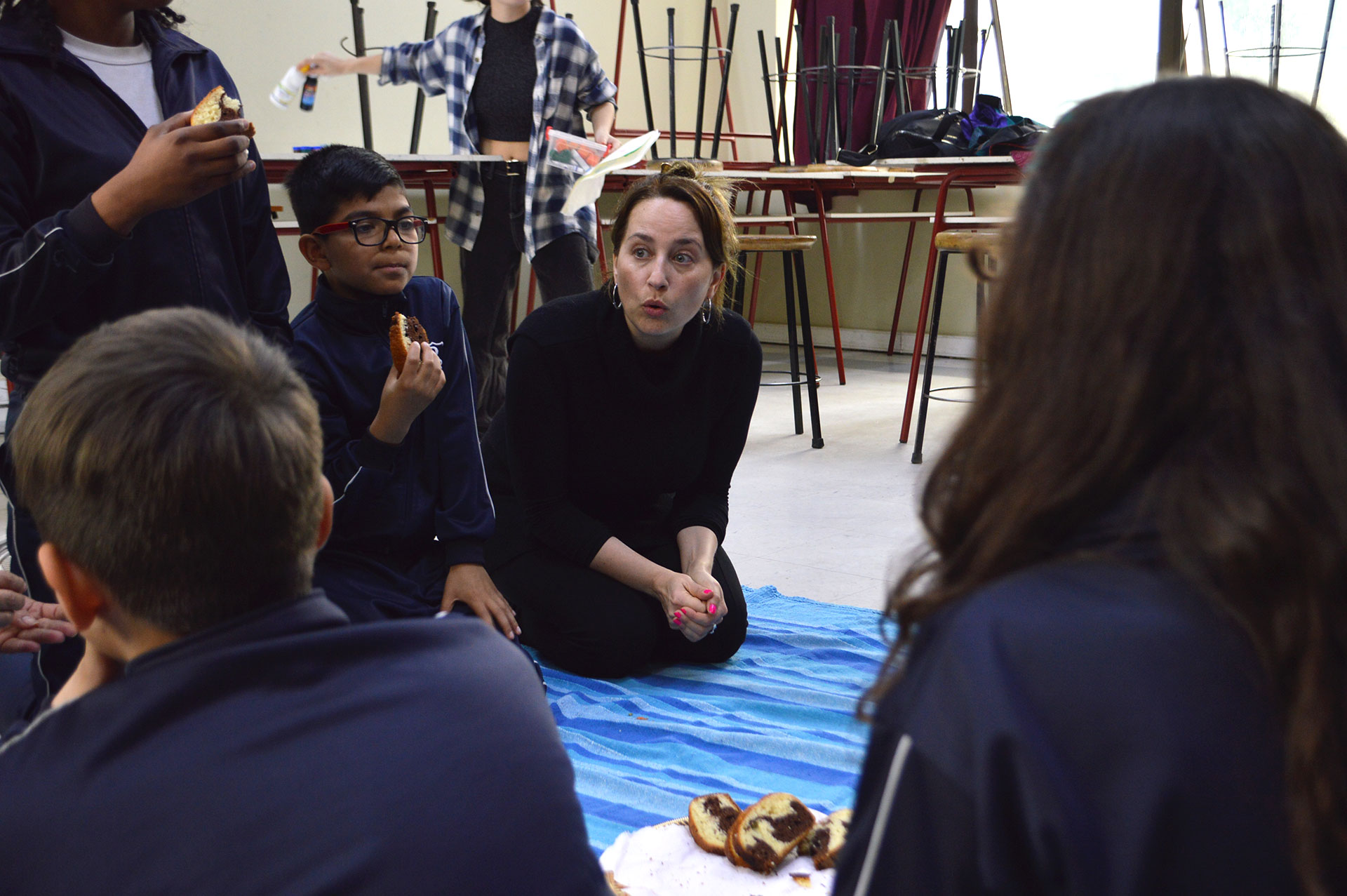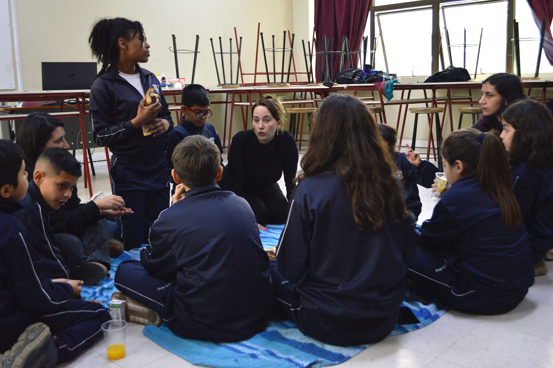 En ese marco, y para reforzar el proceso de acompañamiento pedagógico, la Dra. Marla Freire, junto a estudiantes de Pedagogía en Artes Visuales que asistieron en calidad de ayudantes, dispuso para esta tercera tutoría de academias juegos dinamizadores, pensar colaborativamente ideas para el proyecto e imaginar el trabajo con materiales de la naturaleza para dar el color y la gráfica deseada a las páginas de las libretas ecológicas.
